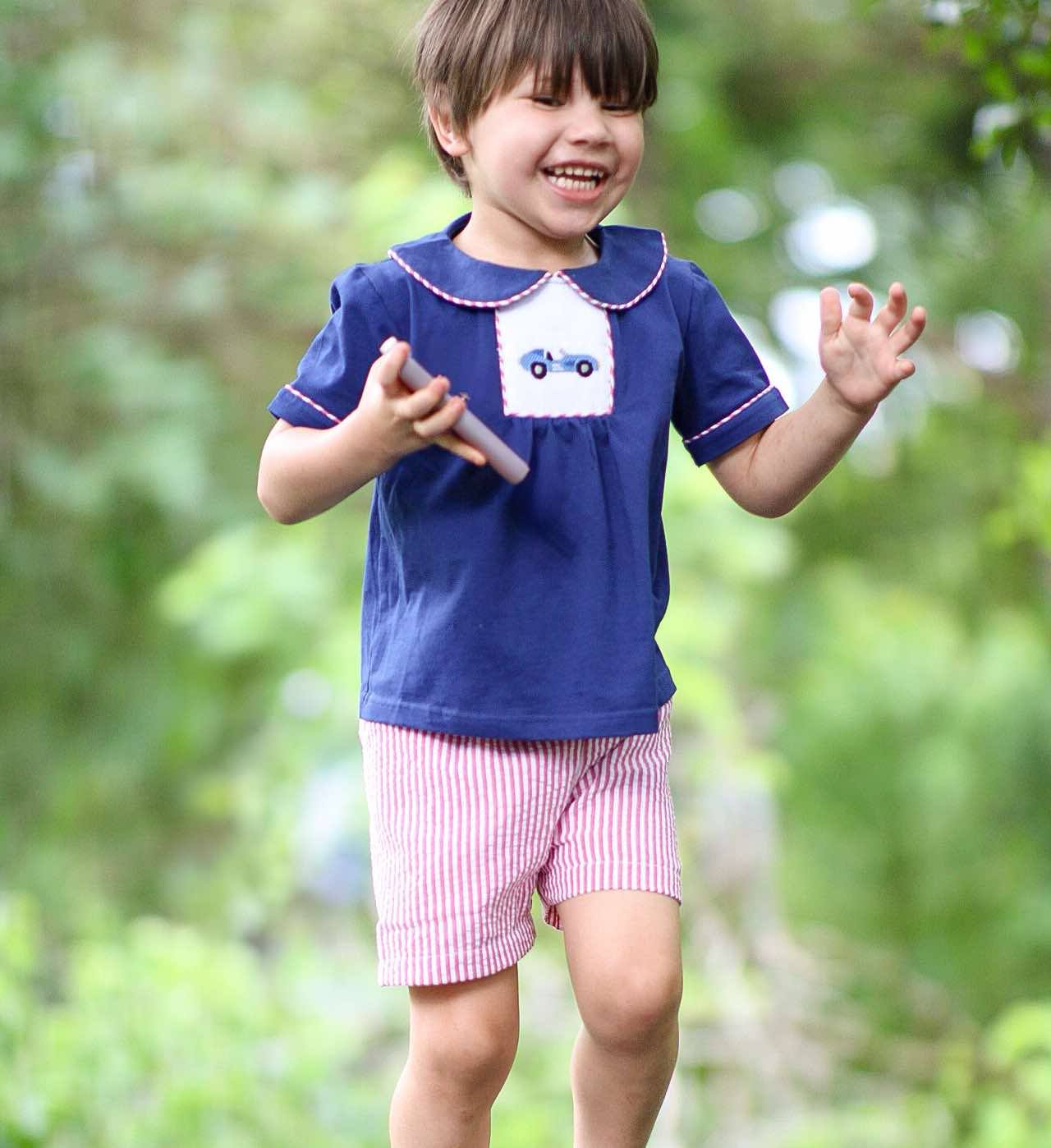 Seamlessly transition from the warmth of summer to the crispness of fall and the frosty embrace of winter. Crafted with meticulous attention to detail and using only the finest materials, each garment embodies the essence of playful sophistication. From lightweight, breathable fabrics perfect for sunny days to cozy layers designed to ward off chilly breezes, our boys collection marries comfort with style. With an array of charming designs and versatile pieces, Southern Peach Smocks ensures that every young gentleman is impeccably dressed for every season's adventure.