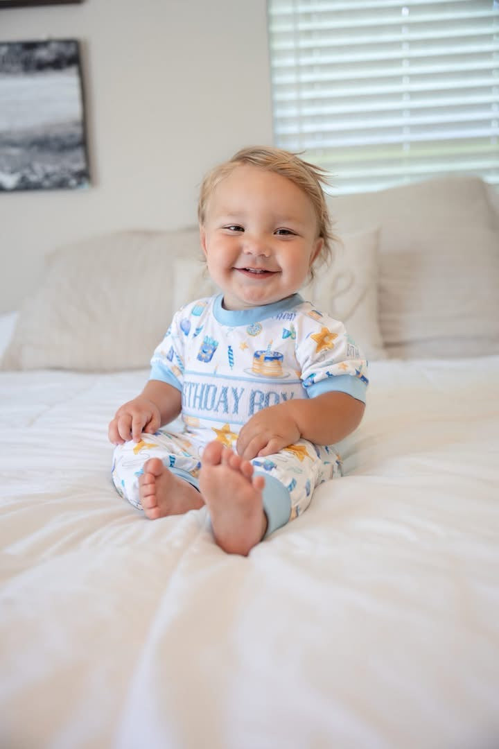 Celebrate his big day in style with our Birthday Boy Smocked Romper! This one-piece outfit features classic smocking across the chest with “Birthday Boy” hand-stitched for an extra special touch. Made with our custom birthday print fabric, it’s both festive and timeless.