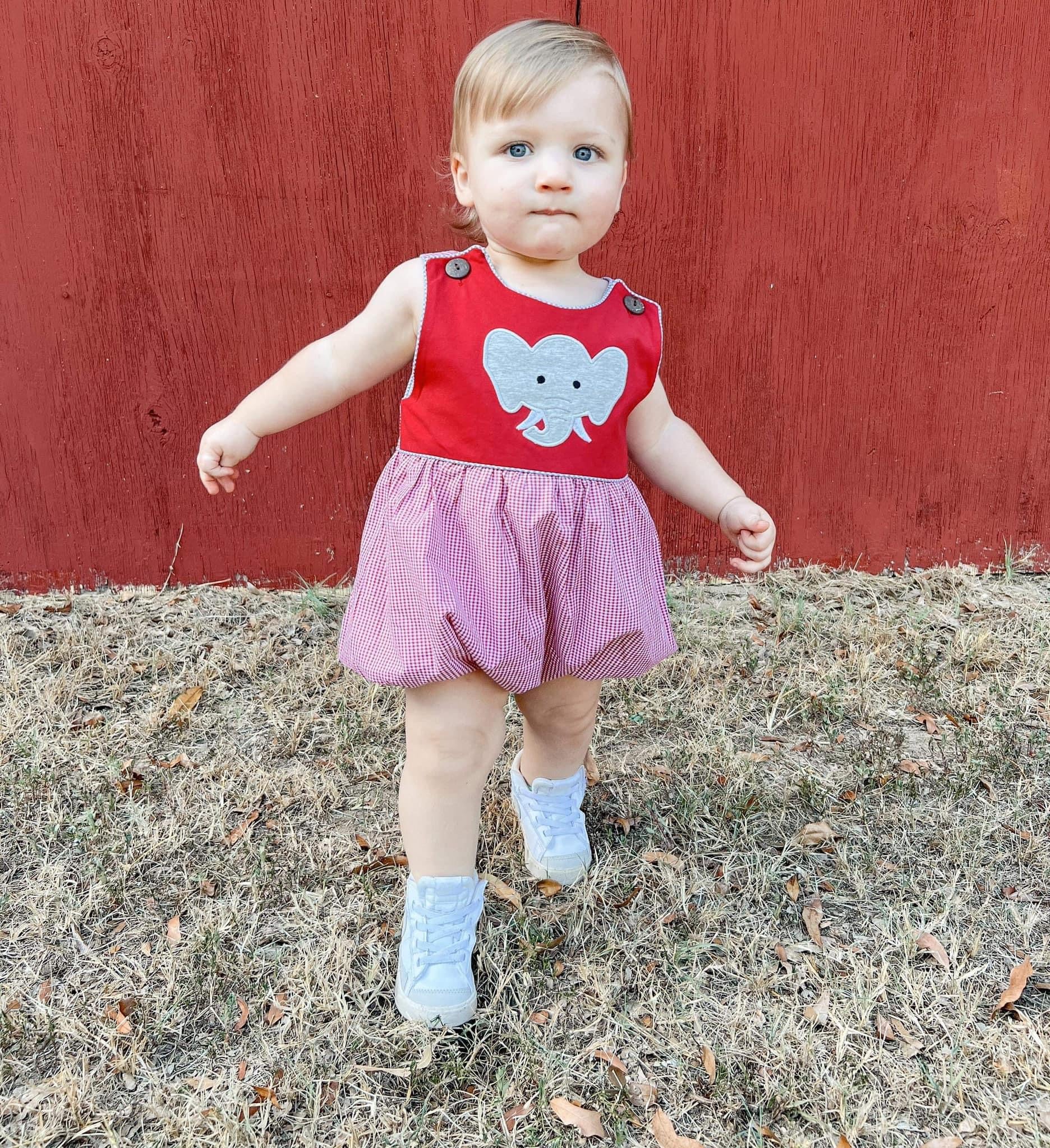 The top of this charming bubble features a cute appliqué elephant, adding a touch of whimsy and playfulness that is sure to bring smiles to everyone's faces. This lovable design announces your baby boy as an avid member of the Alabama family, ready to cheer on the team in style!